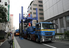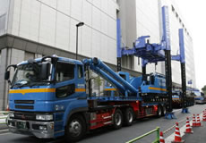 - ジャッキ幅最大寸法を広く(最大4,962mm)、前後方向寸法を限りなく狭く(4,000mm)設定することにより、オールテレーンクレーンや車両の差し込み搬出が容易となりました。